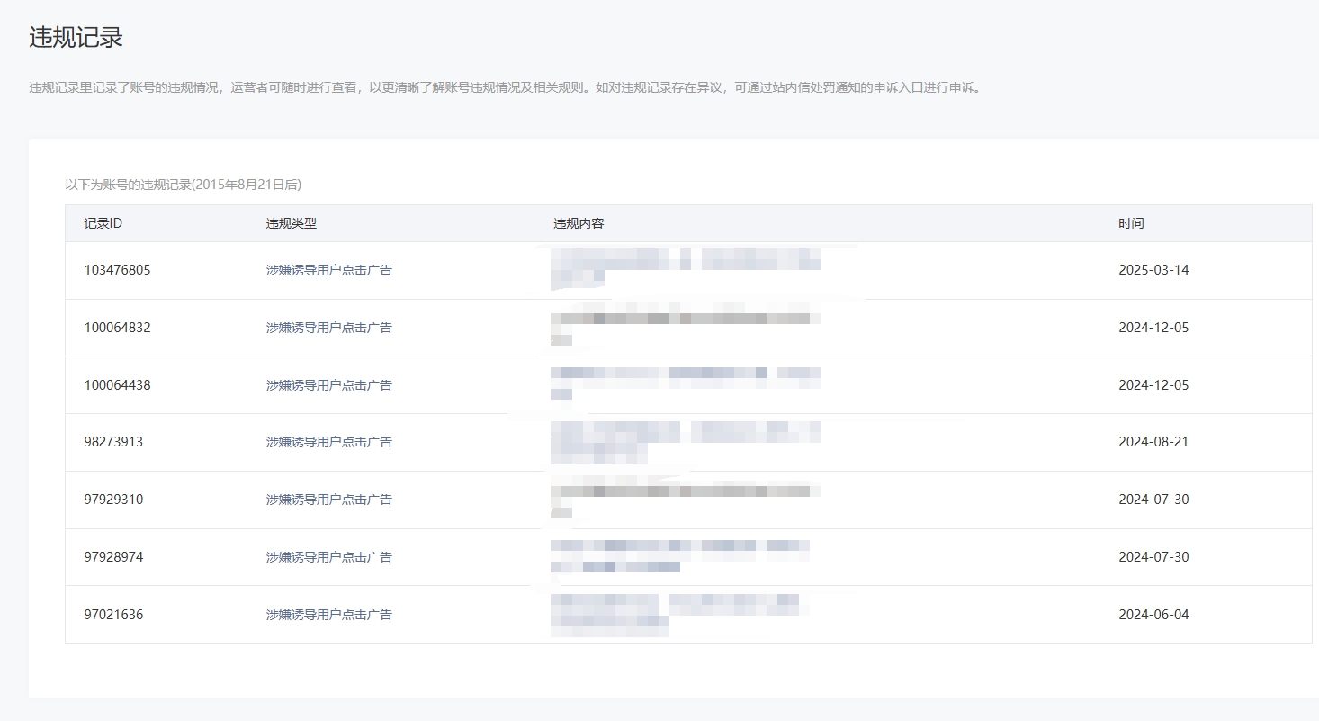 • 违规记录