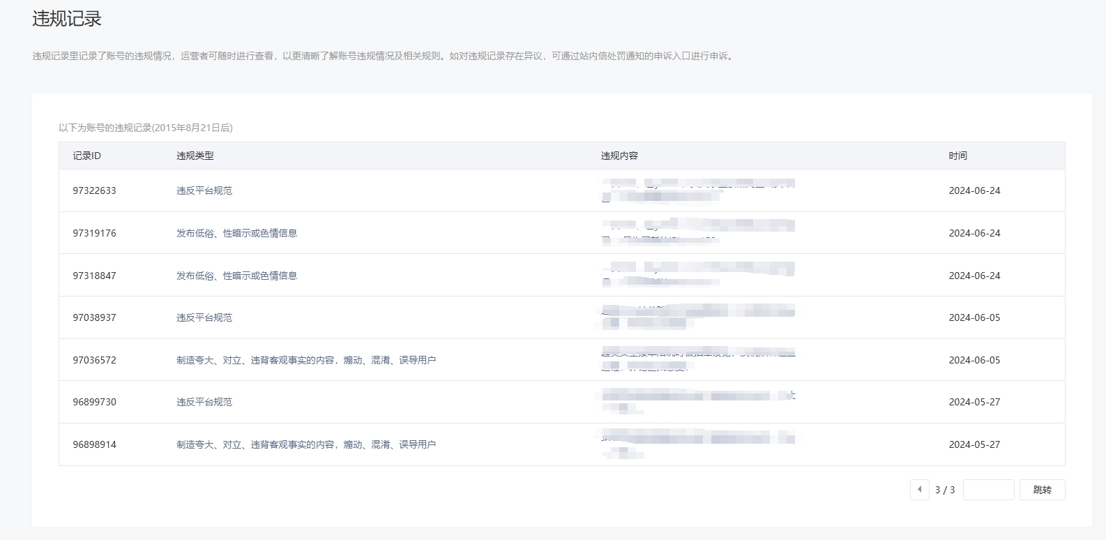 • 违规记录
