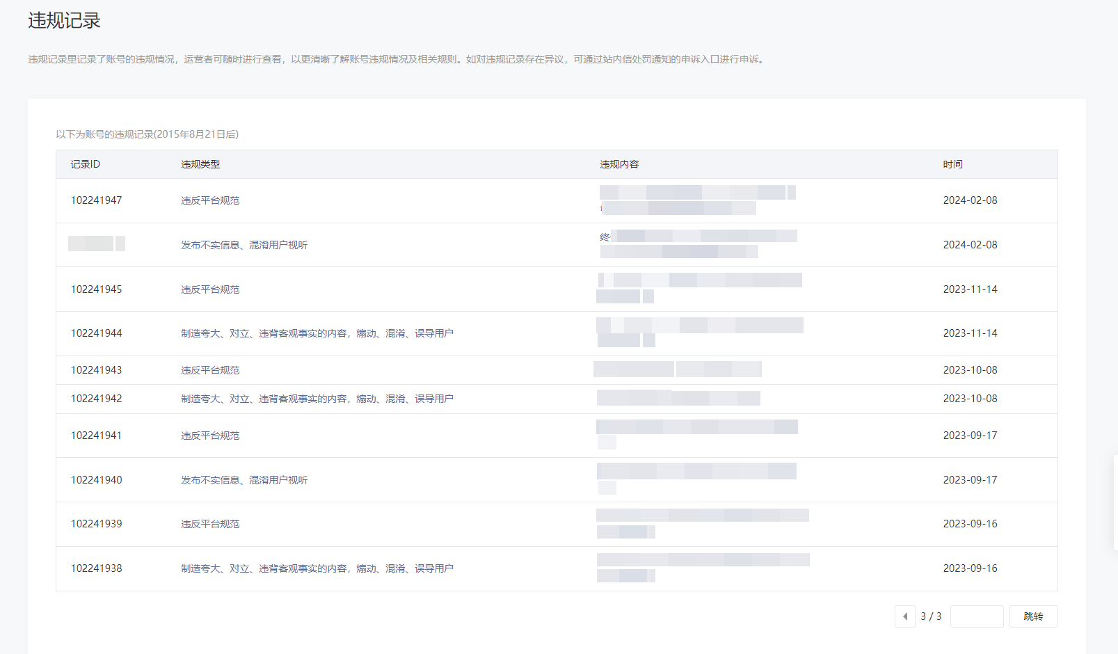 • 违规记录