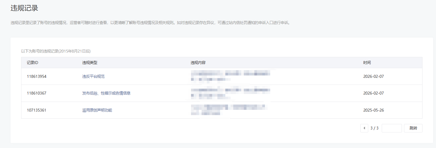 • 违规记录