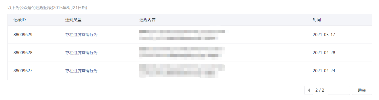 • 违规记录