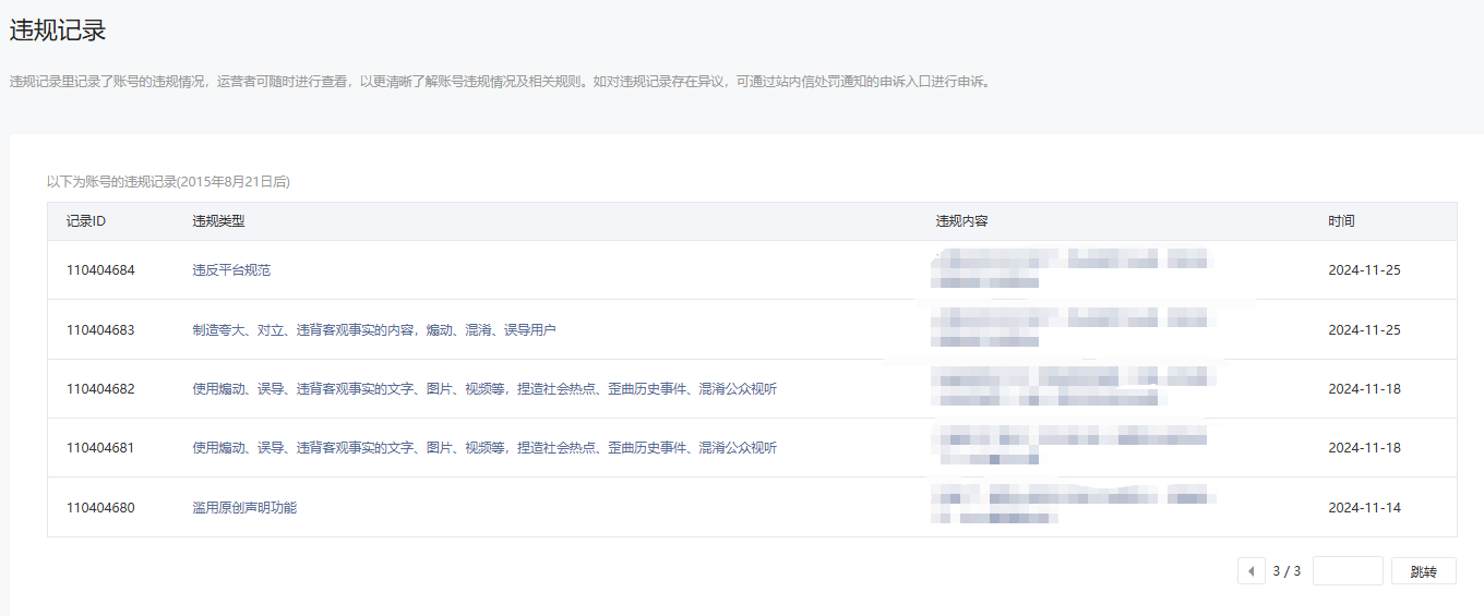 • 违规记录