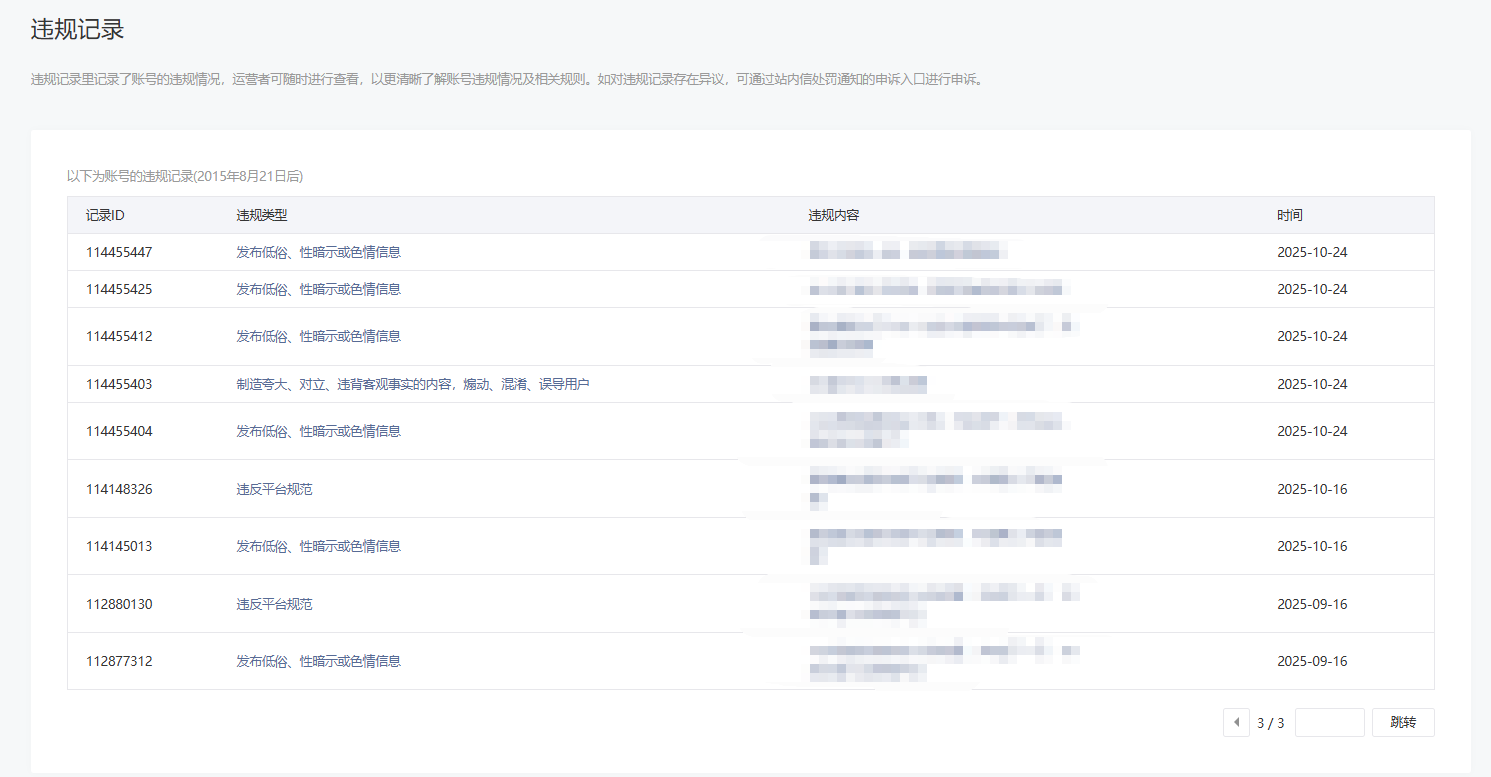 • 违规记录