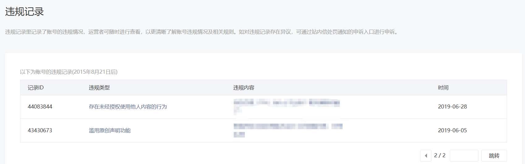 • 违规记录