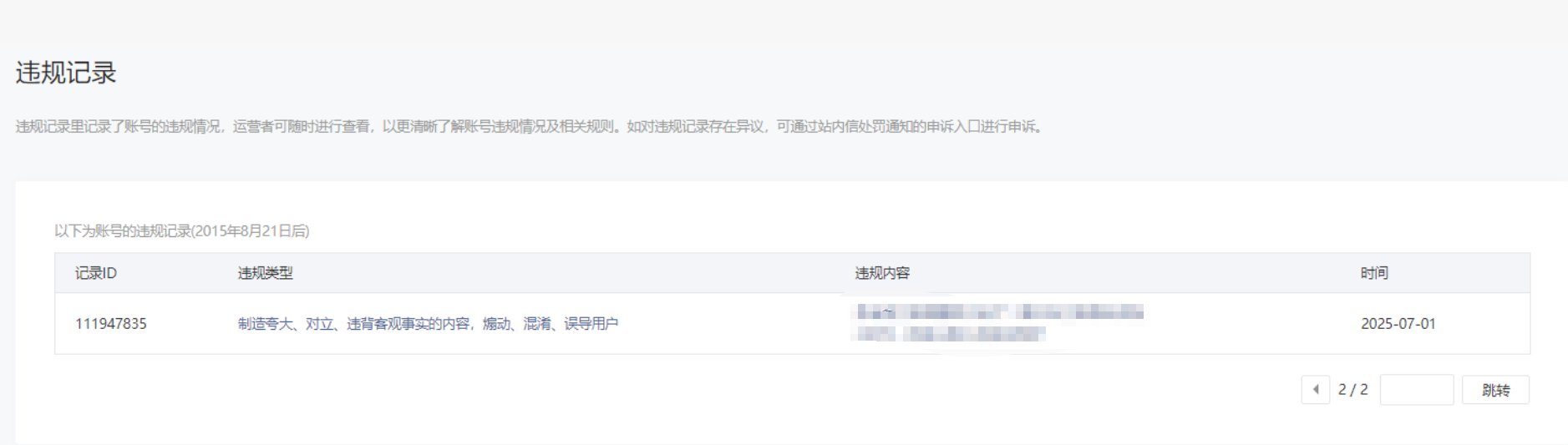 • 违规记录