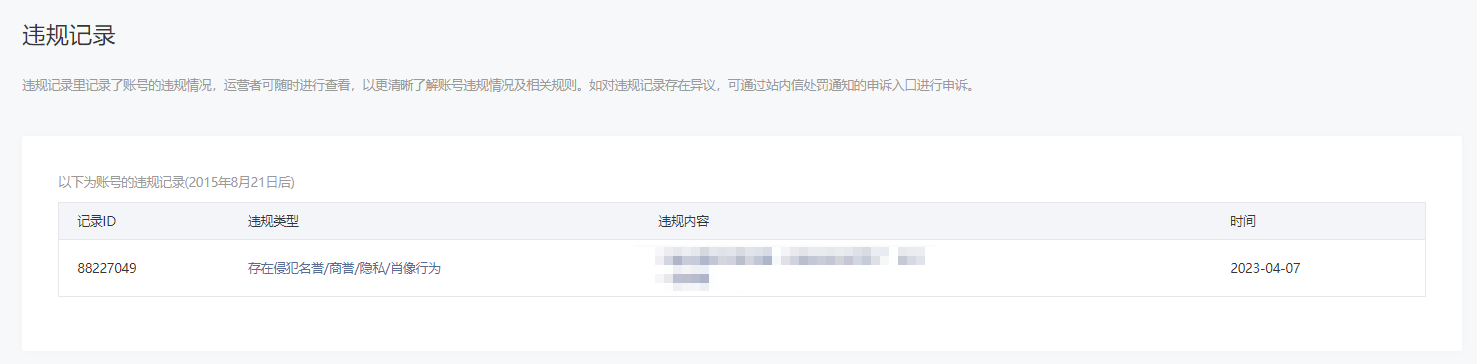 • 违规记录