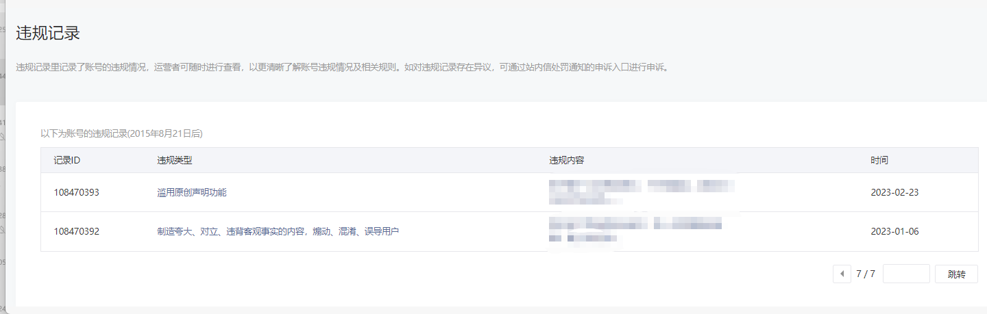 • 违规记录