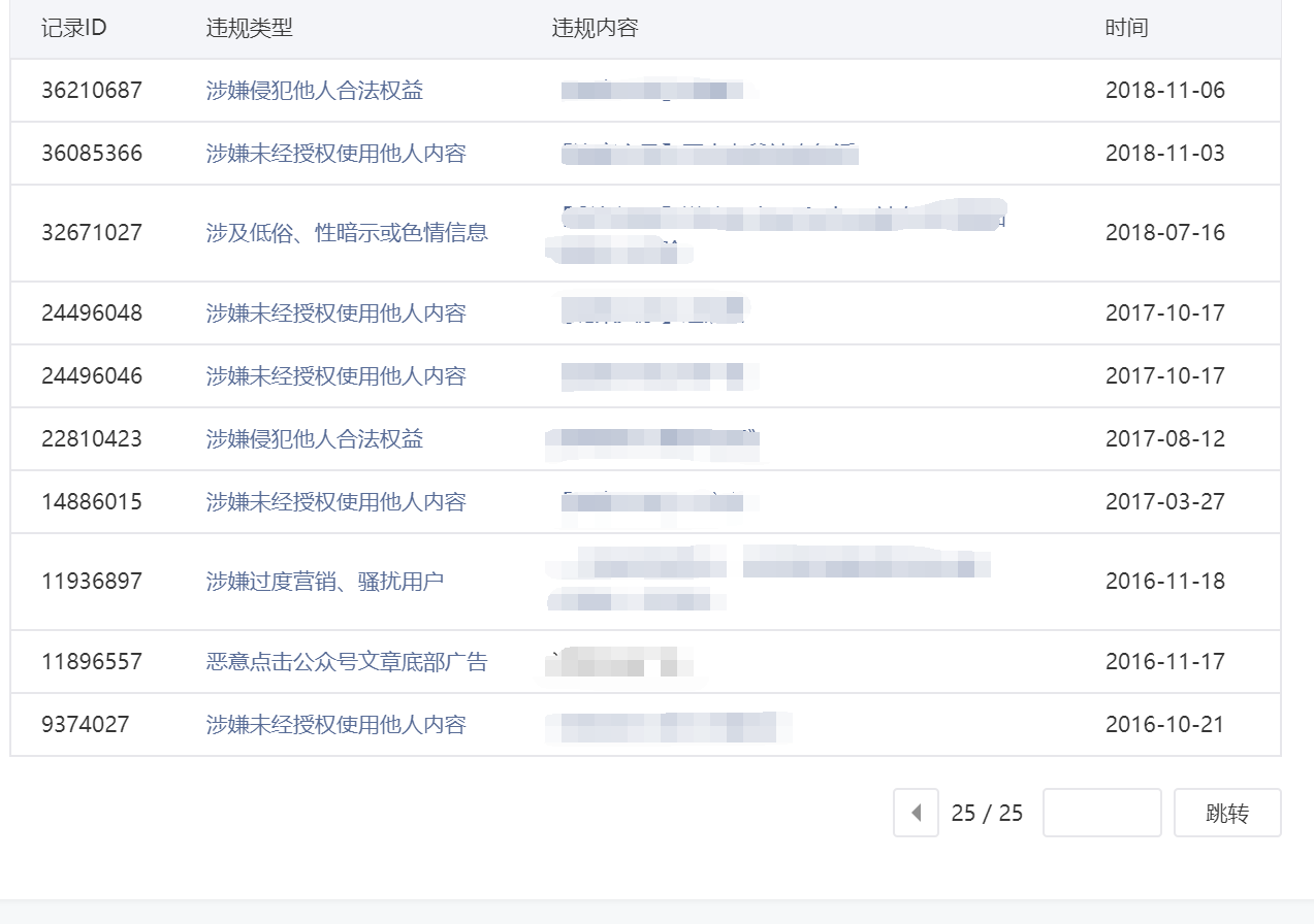 • 违规记录