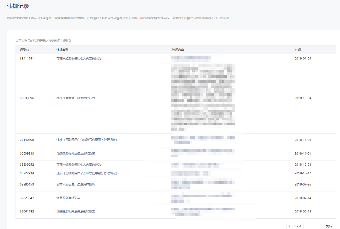 • 违规记录