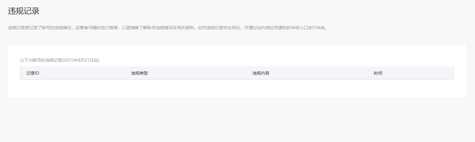 • 违规记录